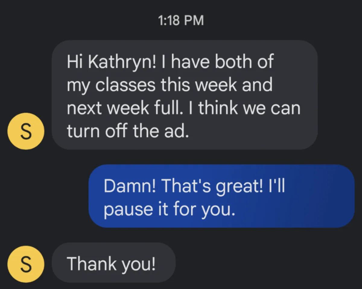 “Booked out all of my classes... we’ve had to slow down the marketing”
