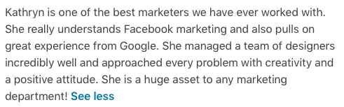 “She grew our business over 100% …. She over delivers her promises."